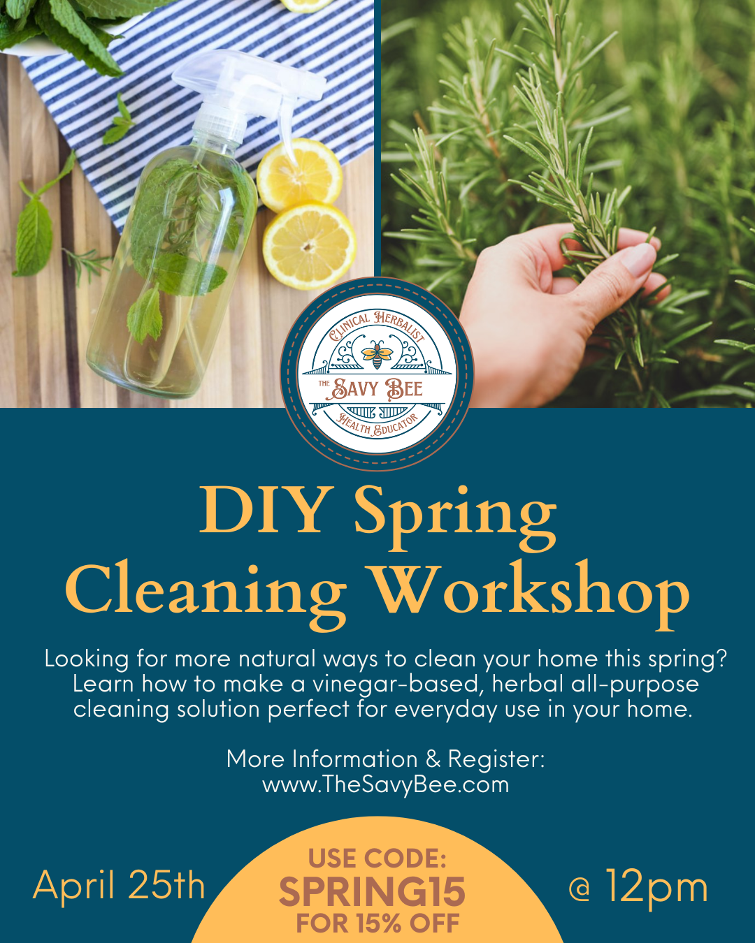 Looking for more natural ways to clean your home this spring? These herbs can help! Learn how to make a vinegar-based, herbal all-purpose cleaning solution perfect for everyday use in your home. Customize it with different cleansing plants, and take home your very own signature formula! Price of the class includes instruction from a clinical herbalist, recipe ideas, hands on practice, and taking home the product you made in class!